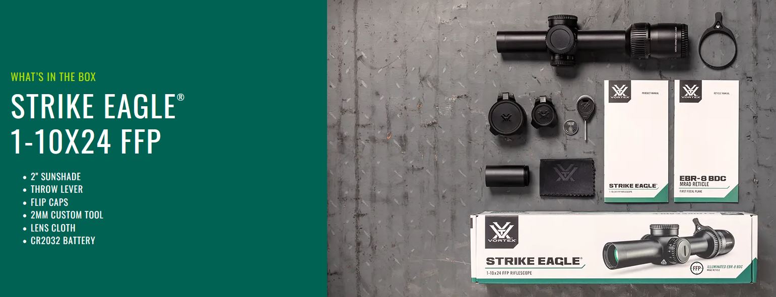 De Vortex Strike Eagle 1-10x24 FFP MRAD (SE-11002) is een veelzijdige en hoogwaardige richtkijker, ontworpen voor de moderne sportschutter die maximale prestaties eist op korte én middellange afstanden.