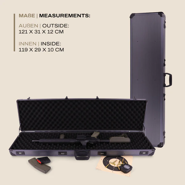 De koffer is voorzien van vier combinatiesloten voor optimale veiligheid. De geïntegreerde hoeken in zwart zorgen voor extra stevigheid, terwijl de pianoscharnier over de gehele achterzijde zorgt voor een soepele en betrouwbare opening en sluiting. Binnenin is de koffer uitgerust met schokbestendige, antislip schuimvulling welke kwetsbare items beschermt tegen stoten en beweging.